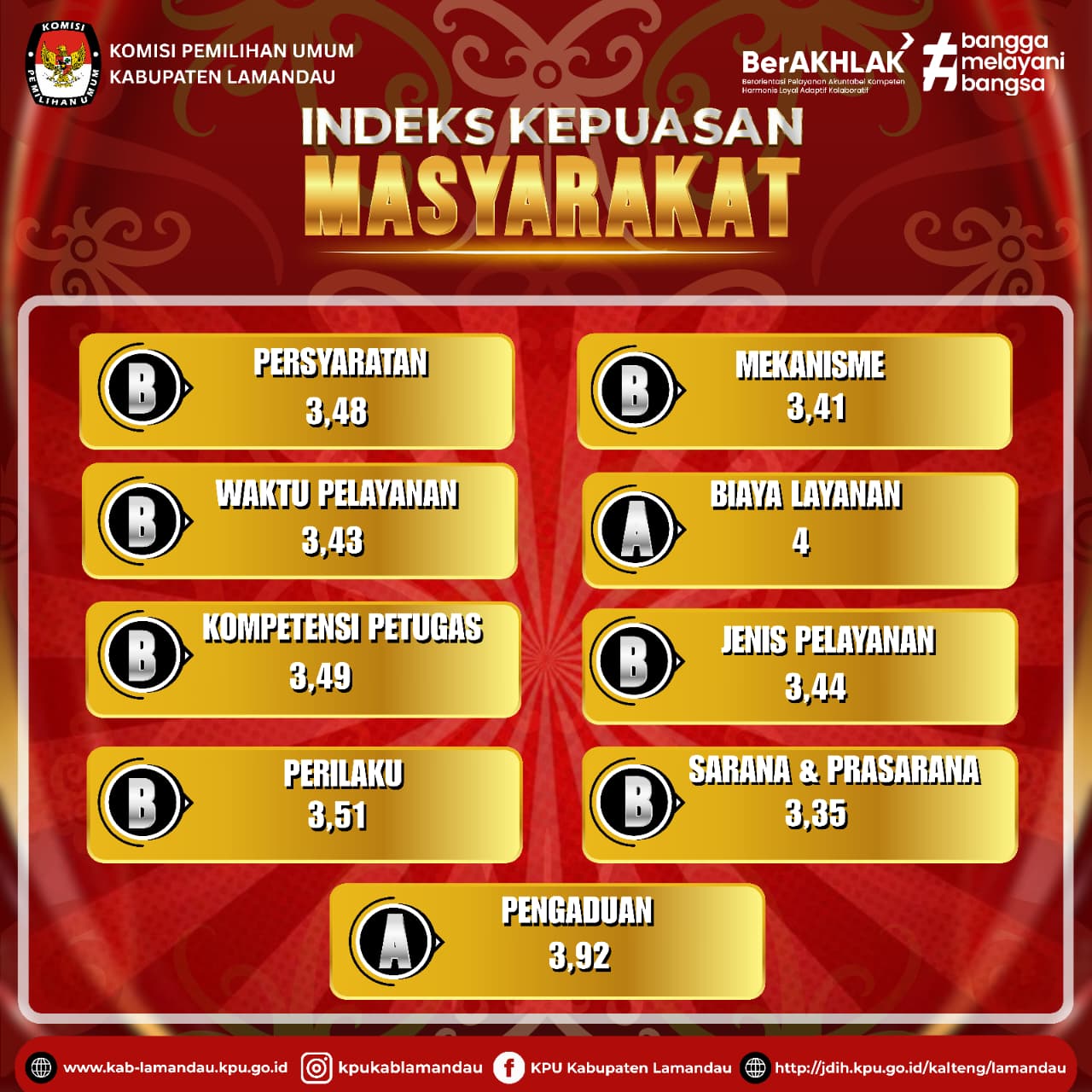 Hasil Penilaian Kinerja Pelayanan Informasi Publik KPU Kabupaten Lamandau Tahun 2025 Berdasarkan Hasil Survei Kepuasan Masyarakat (SKM) Mendapatkan Predikat: