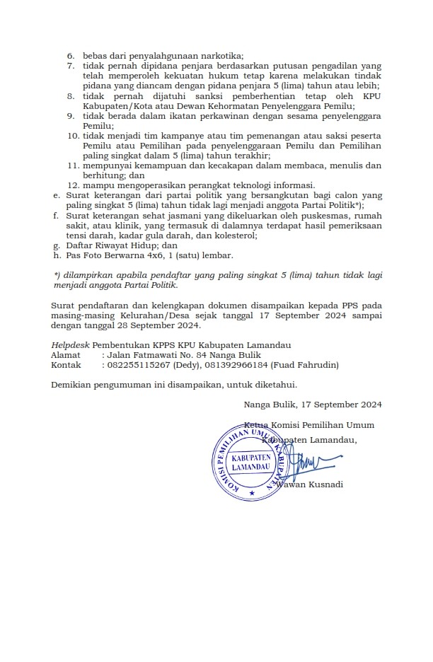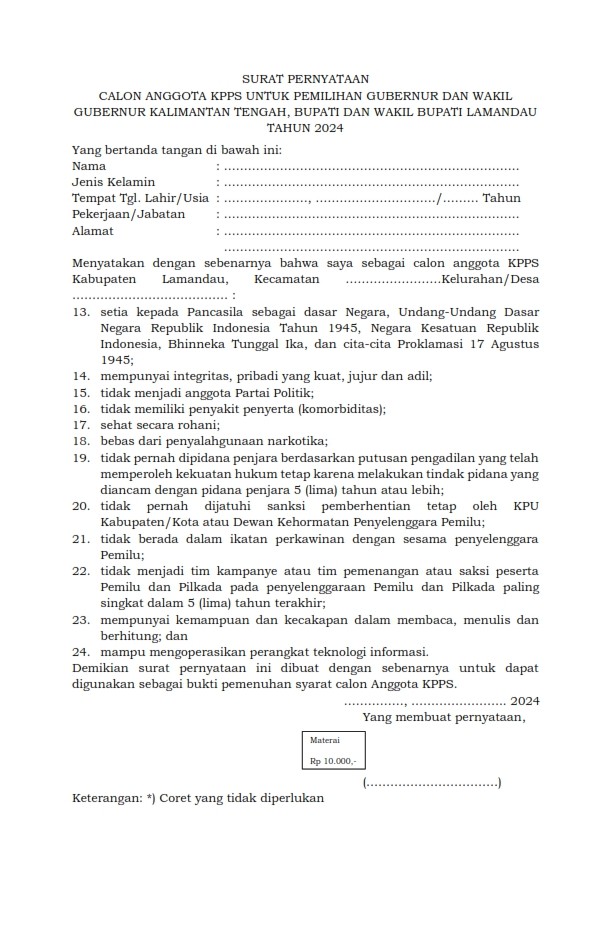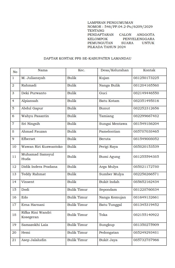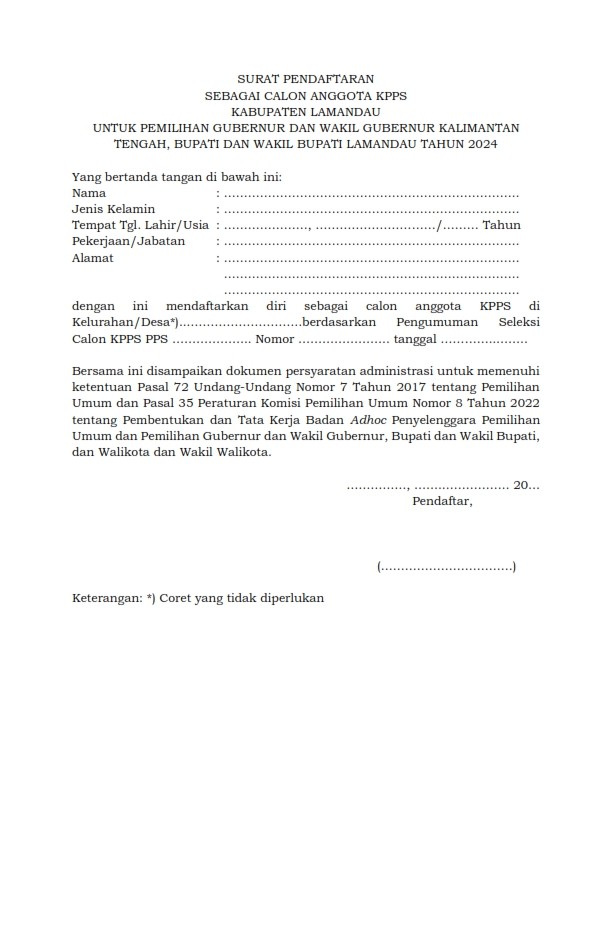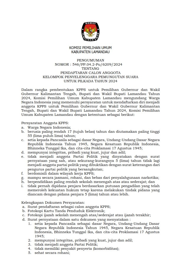 PENGUMUMAN PENDAFTARAN CALON ANGGOTA KELOMPOK PENYELENGGARA PEMUNGUTAN SUARA (KPPS) UNTUK PILKADA TAHUN 2024
