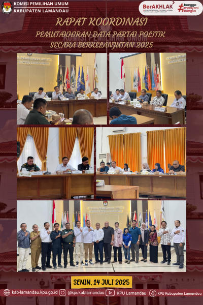 KPU Kabupaten Lamandau melaksanakan Rapat Koordinasi Pemutakhiran Data Partai Politik Berkelanjutan Tahun 2025 pada Senin, 14 Juli 2025, bertempat di Aula KPU Kabupaten Lamandau.
